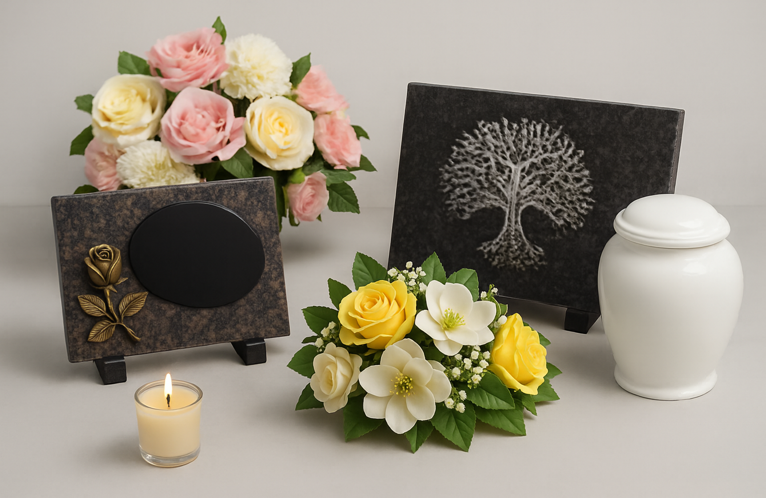 En plus de nos plaques funéraires et de nos fleurs artificielles, Pompes Funèbres Bideau vous proposent en magasin de nombreux articles funéraires supplémentaires pour rendre hommage à vos proches de manière personnelle.